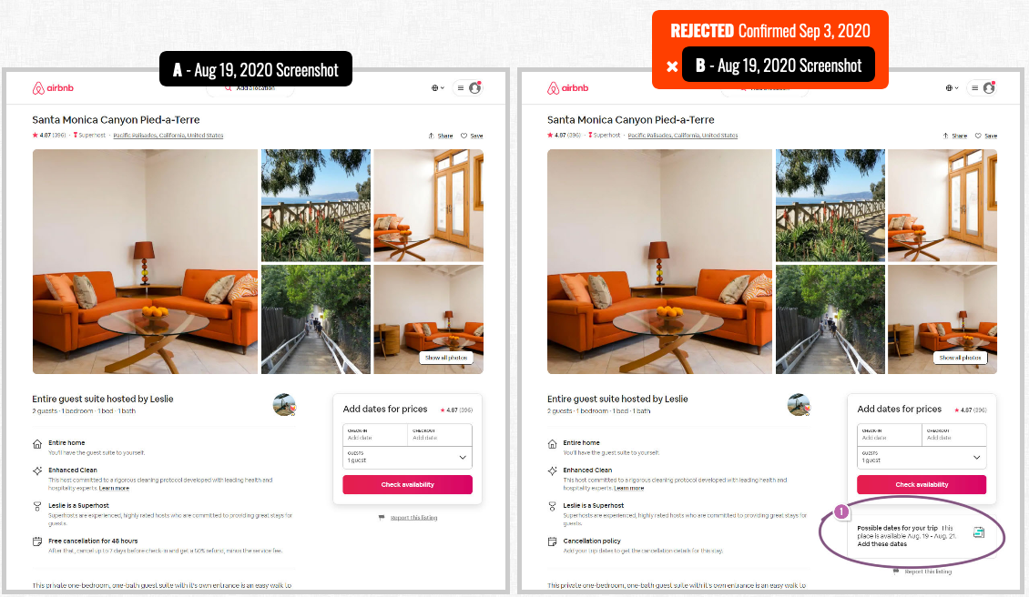 Not all experiments succeed including this one that Airbnb recently ran on their property pages. Their A/B test was automatically suggesting a next available date below the "Check Availability" button when someone didn't already have any chosen dates.