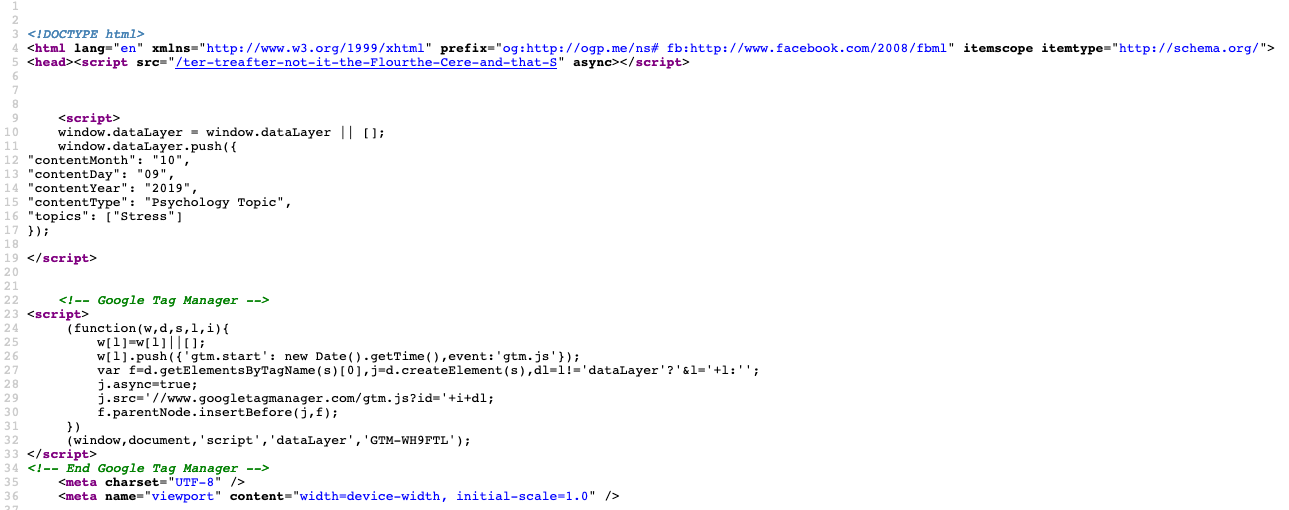 The stress topics page is an example of a page on www.apa.org that has custom dimensions, and on this page you can see the datalayer showing the Custom Dimensions.