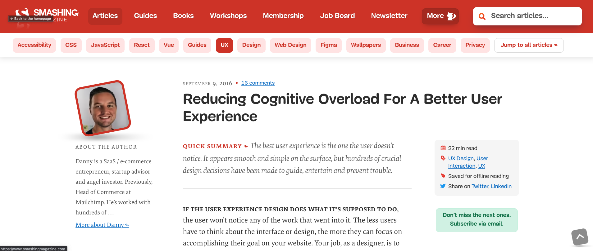 The less users have to think about the interface or design, the more they can focus on accomplishing their goal on your website. Your job, as a designer, is to give them a straight path to their goal by clearing out the obstacles beforehand.