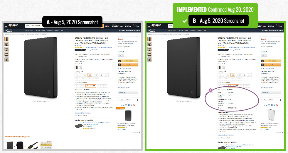 Amazon A/B Testing Location of Product Details