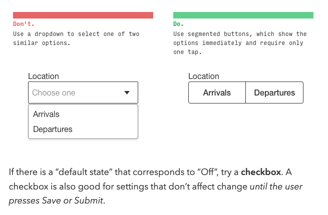 Any time you feel tempted to use a dropdown, ask yourself if one of the 12 controls described in the article (e.g., radio buttons, checkboxes, switches, typeahead, etc.) is better instead.